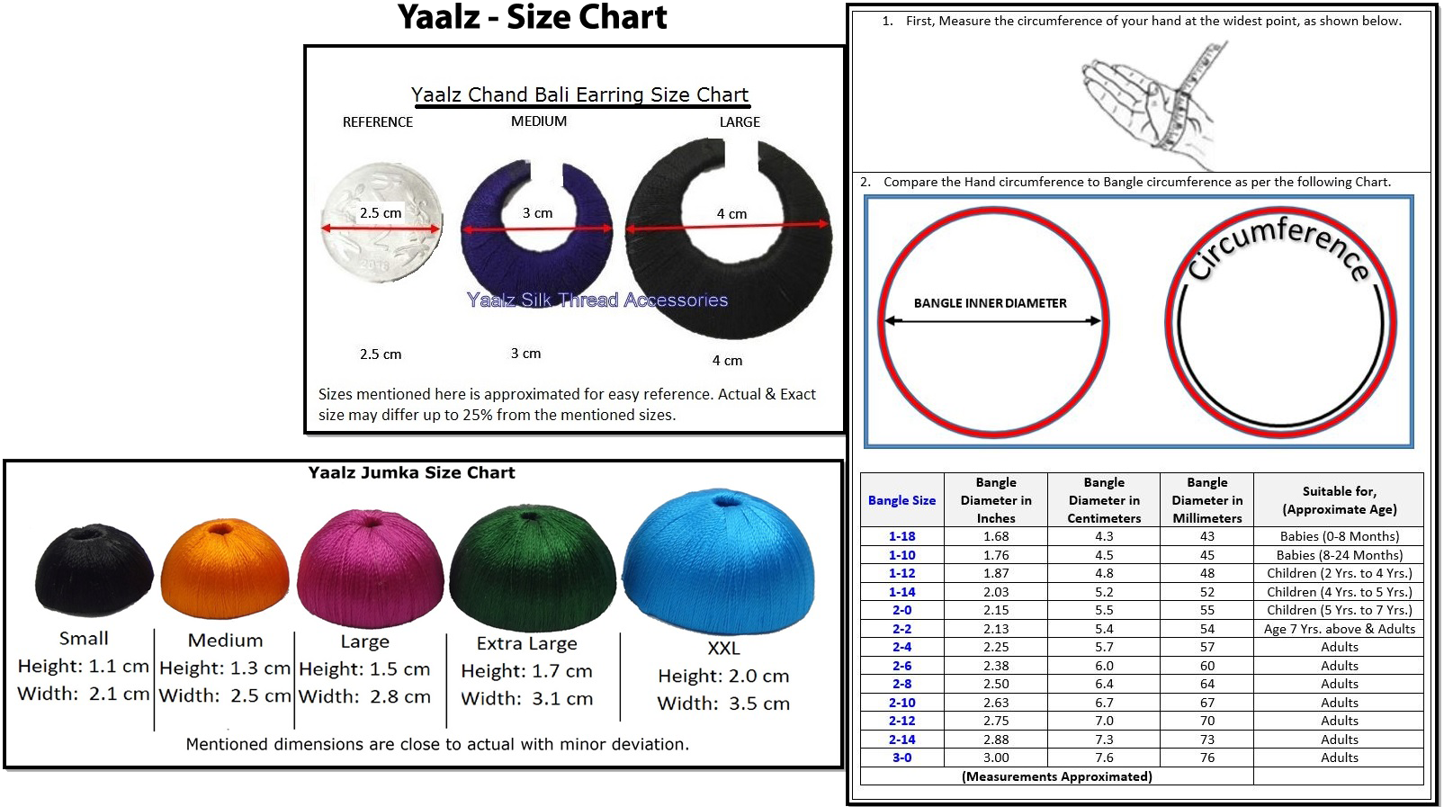 Size GuidePack of One Bangles. Open Close Model. 25mm Wide. Suits 2.4, 2.6 & 2.8 Common Adult Sizes. Also Kids Age From 4 To 11 Yrs. Associated Tags Marriage, Wedding, Party, Festive Disclaimer...